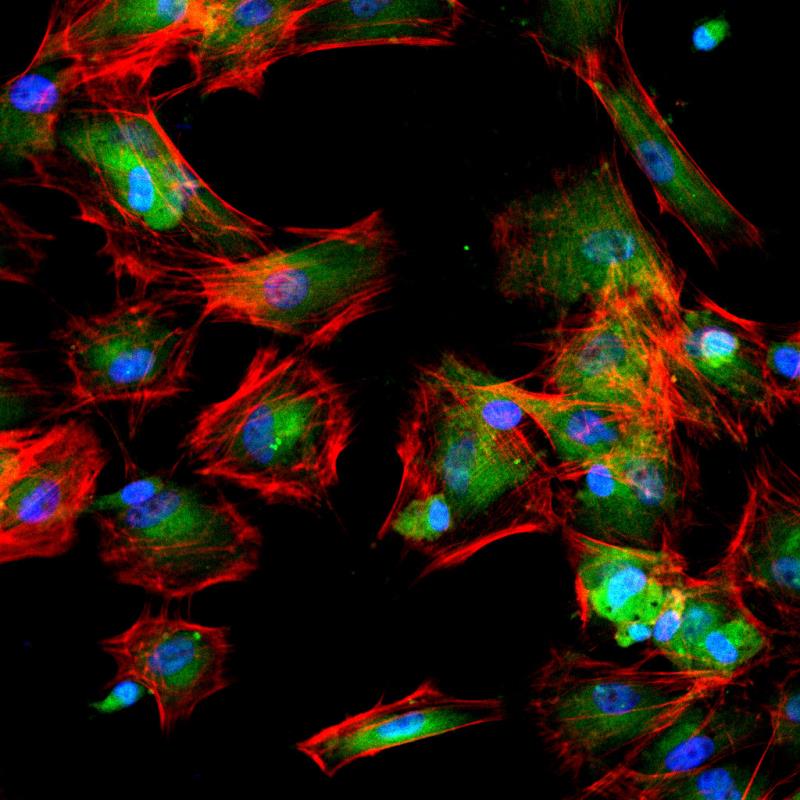 鬼筆環脹可以特異的與真核細胞的F-actin結合,從而顯示微絲骨架在細胞中的分布。鬼筆環腦的熒光衍生物作為一...