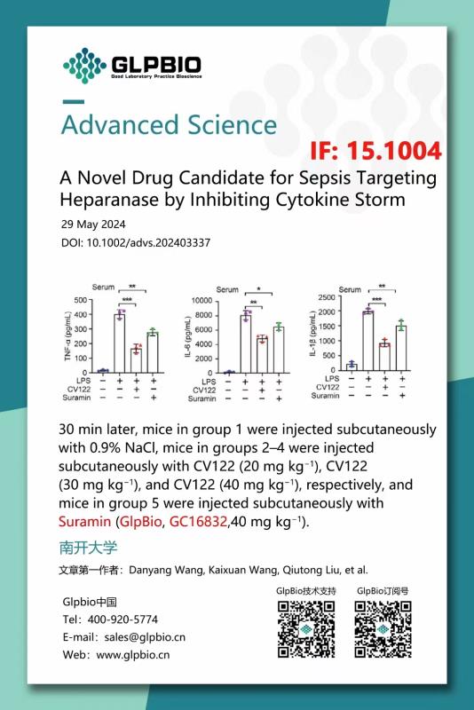 GLPbio Suramin hexasodium salt(GC16832)助力南開大學發(fā)表高分文獻Advanced Science(IF:15.1004)